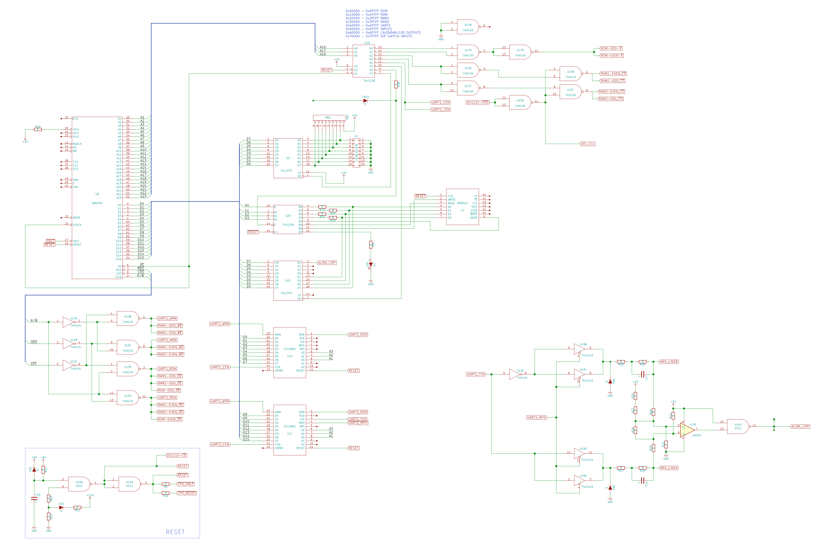 Quick one today, I worked on the schematic a little more. Still a few unknowns and a couple of holes I’ve not filled in yet, but the schematic is 80% complete. At least to a point where I can get a ROM monitor etc running and know where all the hardware is and have a good certainty I’m not talking in the breeze when I start trying to control the hardware.
