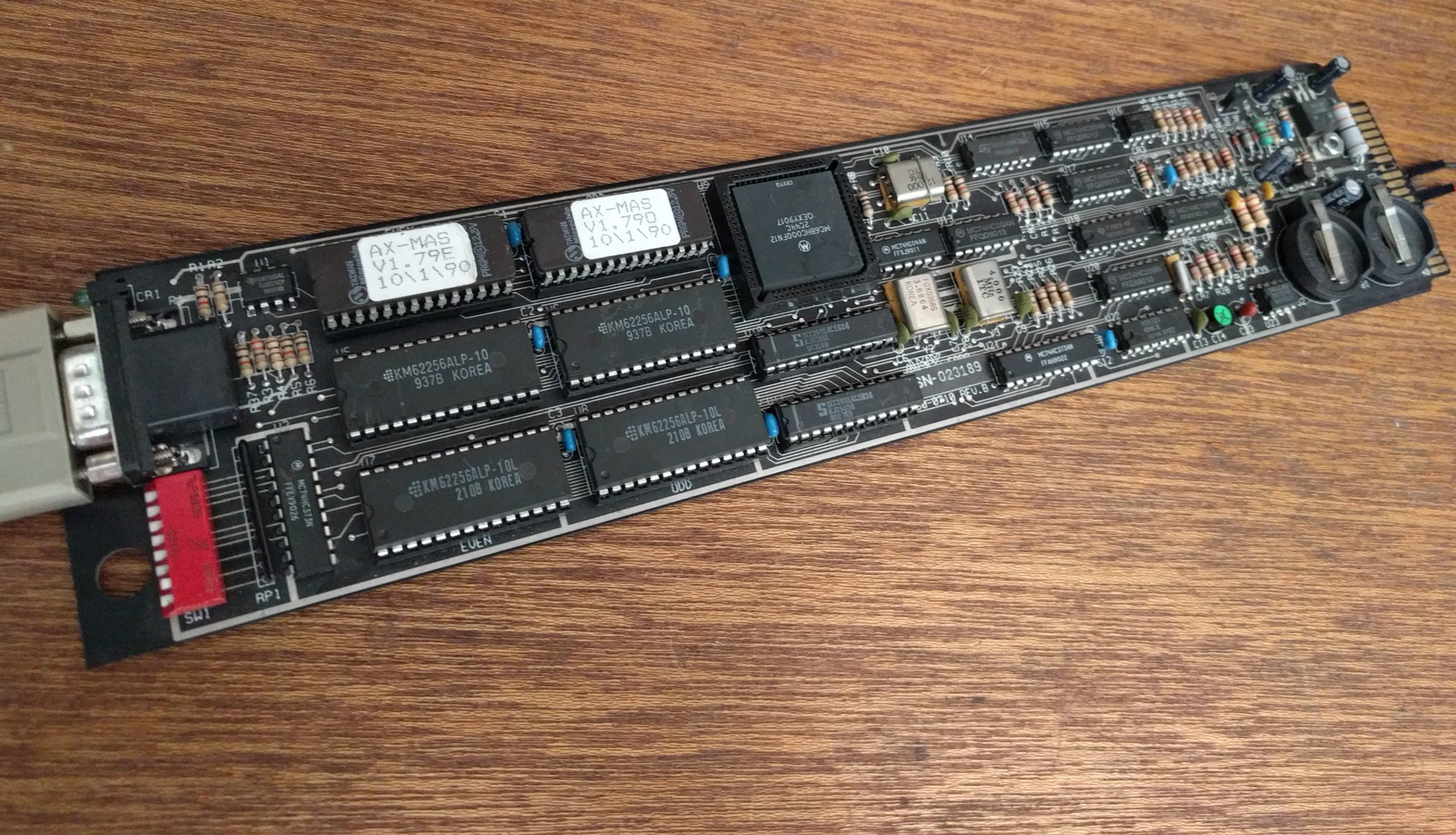 “Yeah it’s got a 68000 on it, with what looks like 64KBs of RAM and I don’t know 32KB or ROM. Looks like there is a clock chip, dual batteries probably for the clock maybe the RAM, and what looks like a standard RS232 port.”